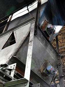 VGVM Vibrator Model used to shake a transfer chute moving a castable refractory material to fill a mold on a vibratory table